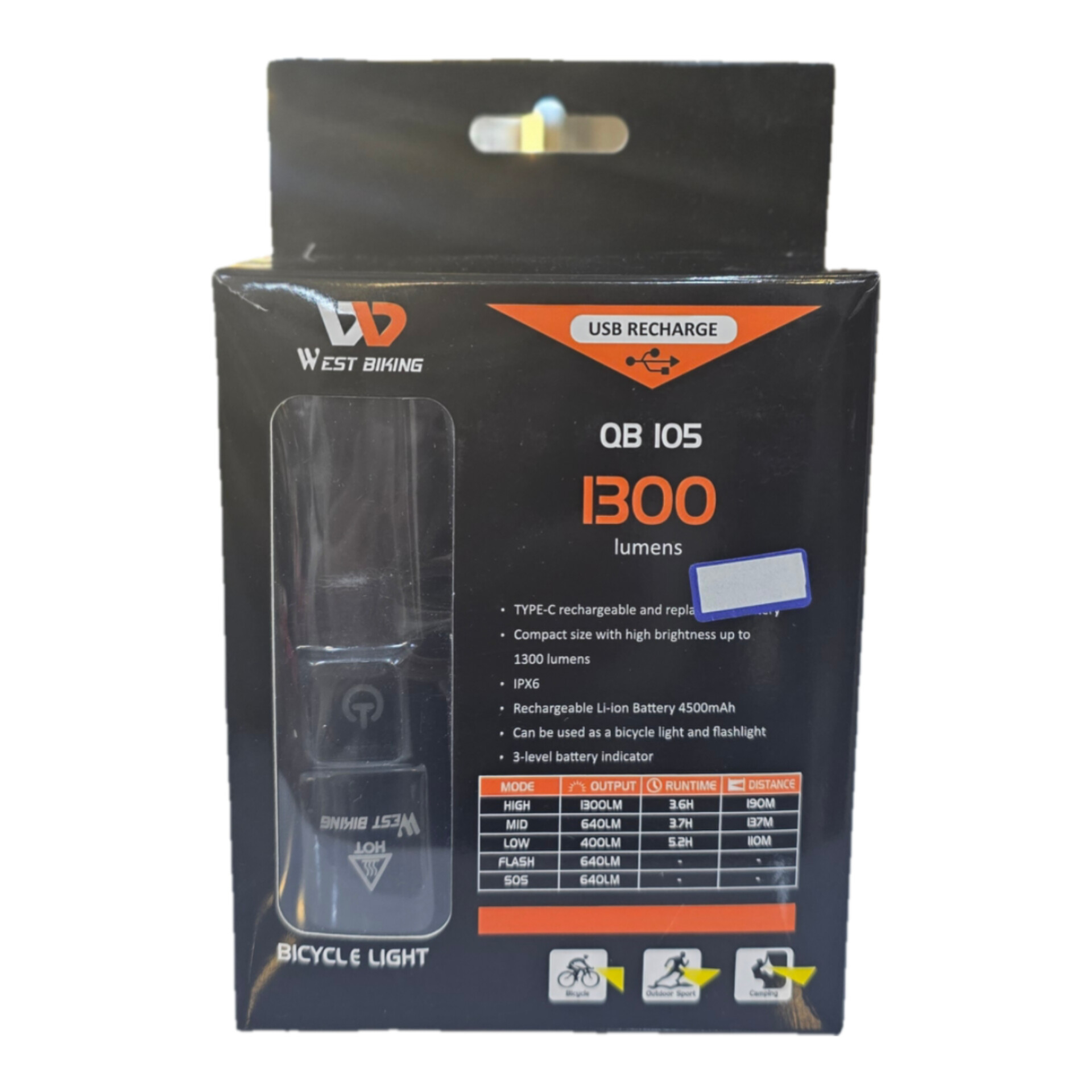 حالت پرنور 1300 لومنی 3.6 ساعت با دوربرد 190 متر / حالت نور متوسط 640 لومنی 3.7 ساعت با دوربرد 137 متر / حالت نور کم 400 لومنی 5.2 ساعت با دوربرد 110 متر